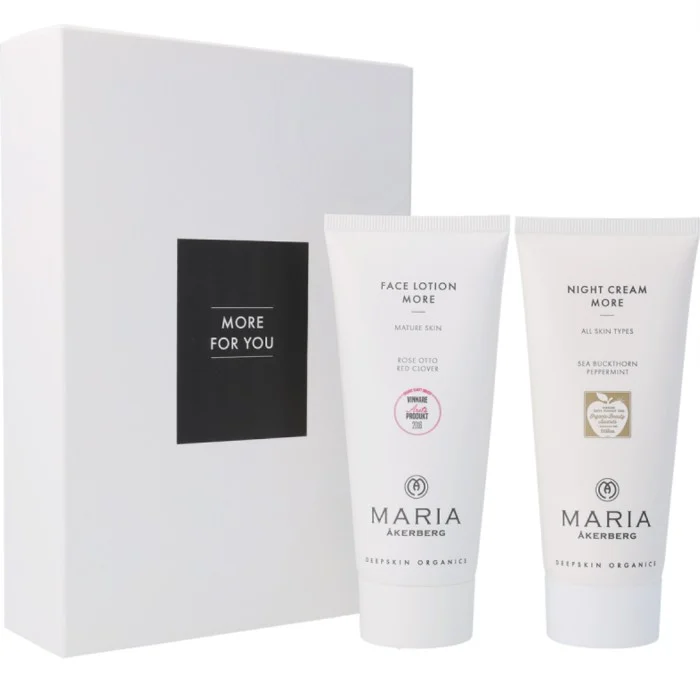 More For You är ett exklusivt set i LImited Edition, med två av våra mest älskade produkter: Face Lotion More och Night Cream More – en kraftfull duo som återfuktar, stärker och ger ny lyster till mogen hud. Perfekt som gåva eller för dig som vill testa MORE-serien och vårda huden med naturliga, ekologiska produkter både dag och natt. Produkterna levereras i en presentask. Värde: 998 SEK.