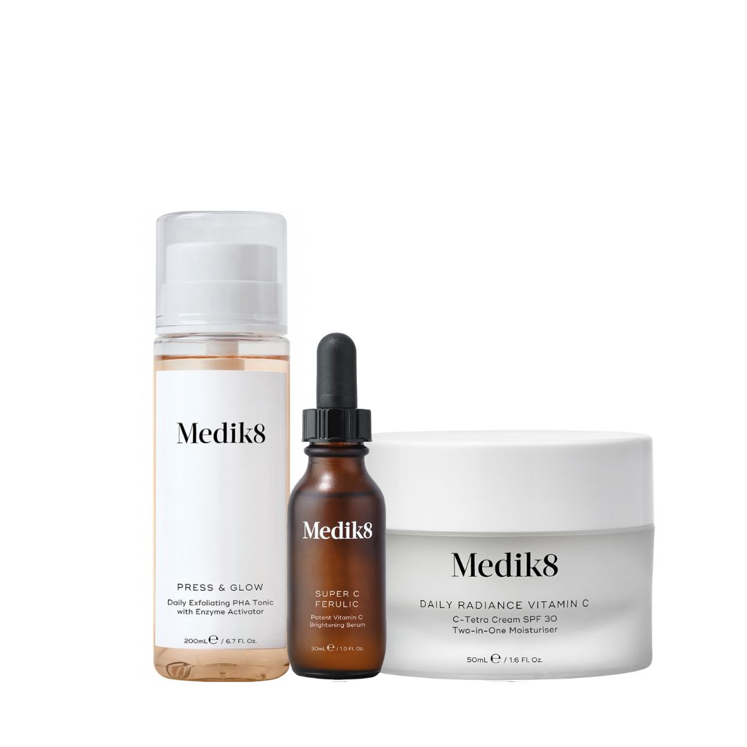 Medik8 Glow in the Snow är ett perfekt kit för dig som vill öka lyster och fukt i huden. Antioxidanten vitamin C hjälper till att stärka hudbarriären, minska pigmenteringar och öka lystern i huden så att du får ett härligt glow.